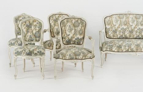 4637. Salon de style Louis XV comprenant un canapé, deux fauteuils, de...