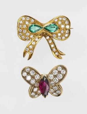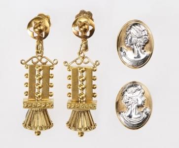 Or 750, L 6,5 et 7 cm, poids brut 6. Provenance: collection Pern...