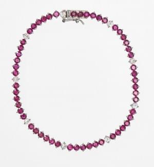 3222. Bracelet ligne serti de rubis taille brillant (env. 2,5 ct) ponc...