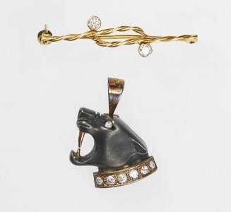 3226. Lot d'un pendentif panthère et d'une broche sertie de diamants