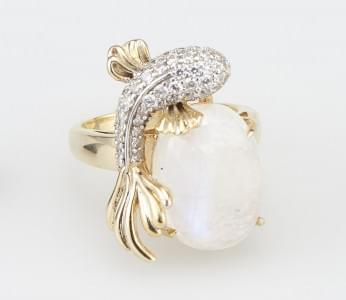 3229. *6724 Bague sertie d'une pierre de lune taille cabochon ovale en...