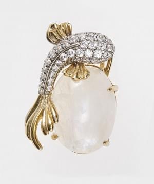3230. *6726 Pendentif serti d'une pierre de lune taille cabochon ovale...