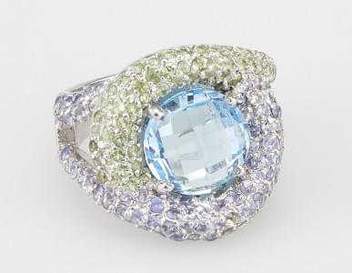 3240. Bague sertie de diverses pierres de couleurs taille ovale caboch...