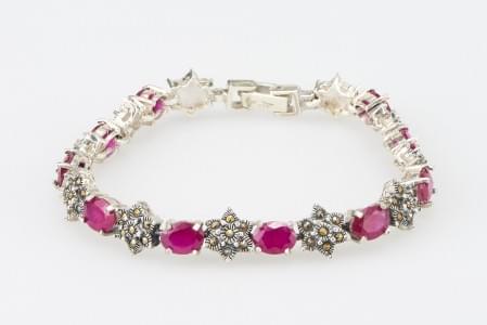 3234. *Bracelet ligne serti de rubis probablement synthétiques alterné...