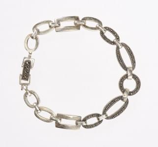 3235. *Bracelet à maille ovale et rectangulaire pavé en son centre de...