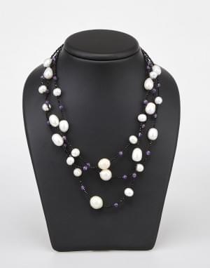 L'un à deux rangs de perles baroques alternées de perles d'améth...