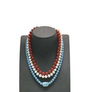 L'un composé de trois rangs de perles, de perles de corail et de...