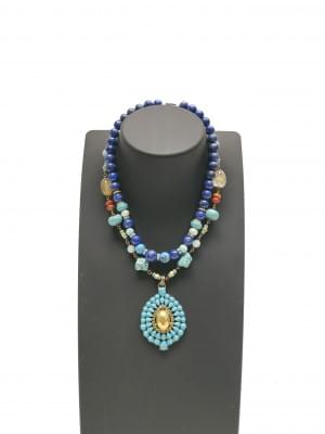 L'un composé de perles de lapis-lazuli ponctuées de turquoises,...