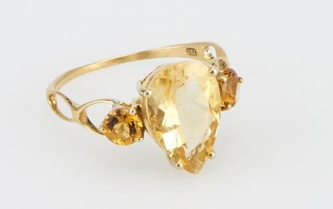 3262. *7119 Bague sertie d'une citrine taille poire (env. 2,2 ct) épau...
