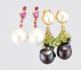 3232. *7178 Pendants d'oreilles retenant des perles baroques (D env. 1...