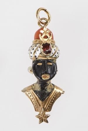 3279. Pendentif à tête de maure émaillé au turban serti d'un grenat et...