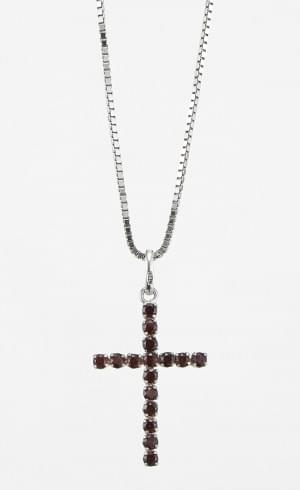 3283. Chaîne à maille vénitienne retenant une croix sertie de grenats...
