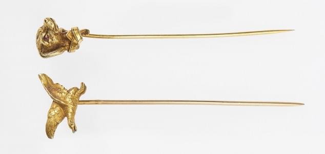 3286. Lot de deux épingles, l'une à motif d'oie sauvage et l'autre à m...
