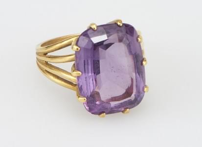 3293. Bague sertie d'une améthyste taille coussin ovale (env. 10 ct)