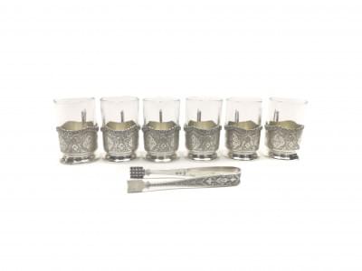 3751. 6 tasses et un sucrier à motifs d'arabesques,