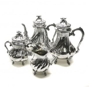 3761. Service à thé et à café piriforme à motif de rocailles
