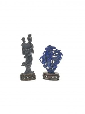 3801. Deux Bouddhas, pierre dure bleue, figurés assis, Chine