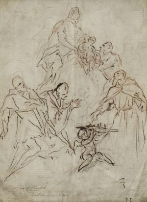 Etude pour la Vierge et l'Enfant parmi les saints, encre et sang...