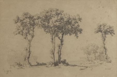 Trois arbres, mine de plomb, signée, 30x44 cm