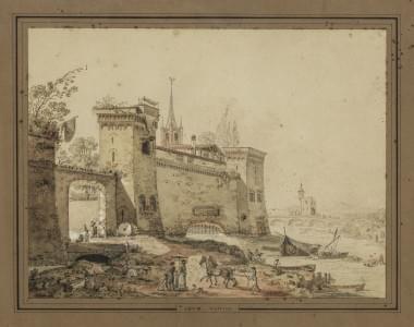 Vue d'un château, lavis et aquarelle, 23x31 cm