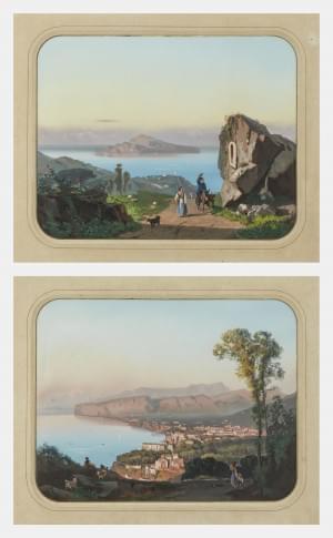 Vues de la baie de Naples, paire de gouaches sur papier, signées...