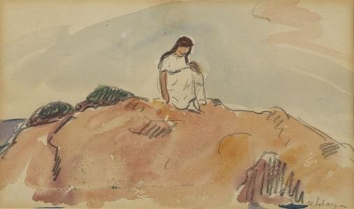 Méditation sur la dune, aquarelle sur papier, 13x15 cm