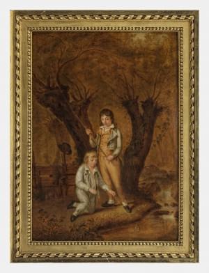 Partie de pêche des enfants, huile sur panneau, 55x38,5 cm