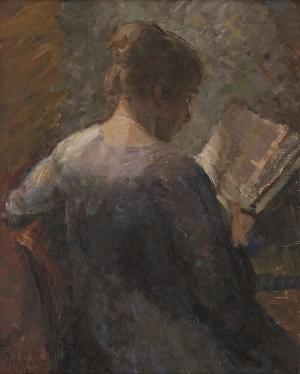 Femme à la lecture, huile sur toile, 42x34cm