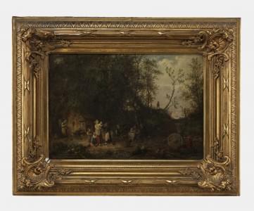 Réunion champêtre, huile sur toile, 48x58 cm