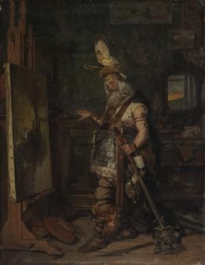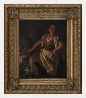Modèle costumé dans le studio d’un artiste, huile sur toile, sig...