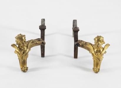 215. Paire de chenets à motif de putto d'époque Louis XVI