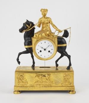 Figurant une jeune femme montée sur un cheval, bronze doré et br...