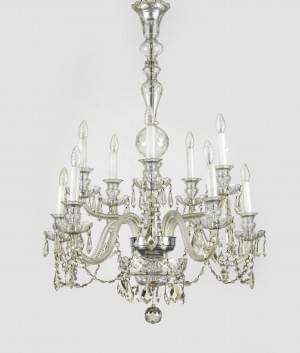 Bronze argenté et pampilles de verre facettées, H 100 cm