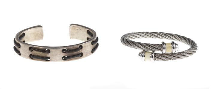 L'un à lanières de cuir, l'autre à maille torsadée, argent 800 e...