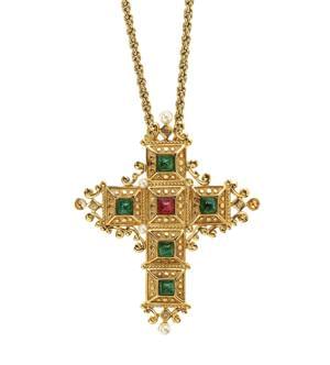L'un à motif de croix ajourée sertie de turquoises et l'autre à...