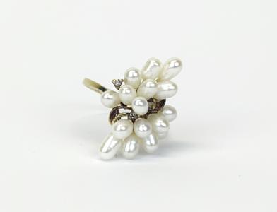 3010. Bague sertie de petites perles d'eau douce rehaussées de brillan...