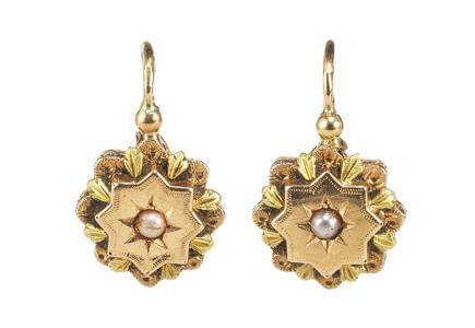 3016. Dormeuses anciennes centrées de petites demi-perles