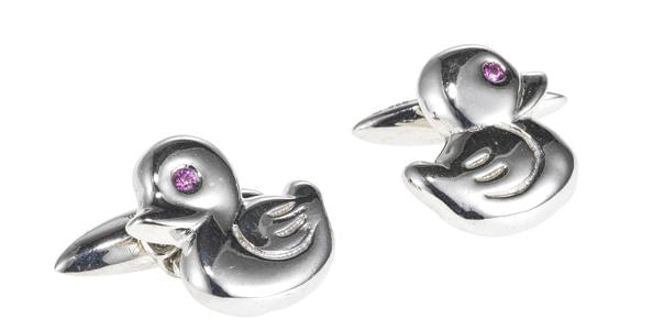 3042. Boutons de manchette à motif de canards aux yeux sertis de rubis