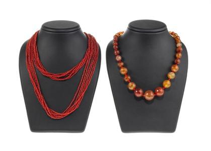 L'un composé de perles de cornaline facettées en chute, l'autre...