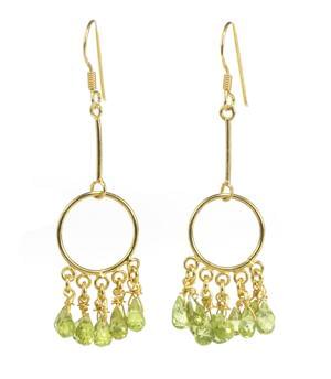 3056. *Pendants d'oreilles stylisés retenant des péridots taille briol...