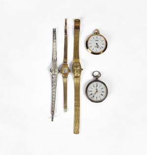 3077. Lot de trois montres-bracelets et de deux montres de poches