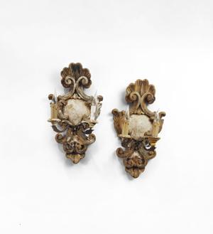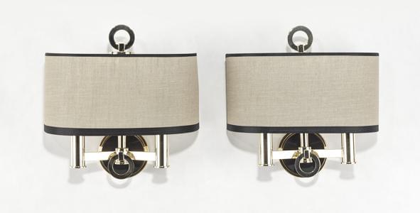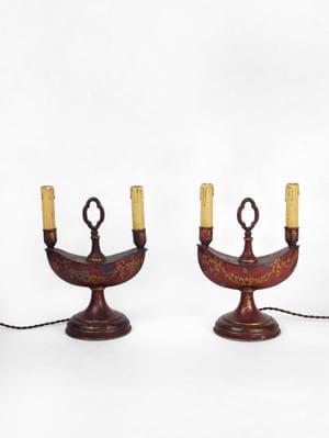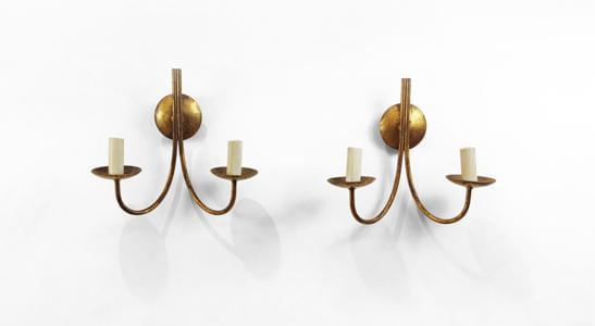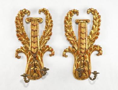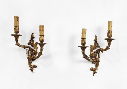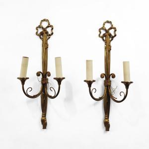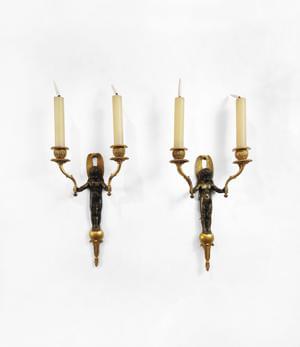 4337. Paire d'appliques à deux lumières de style Empire à motif de put...