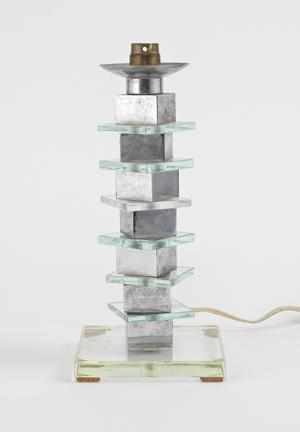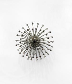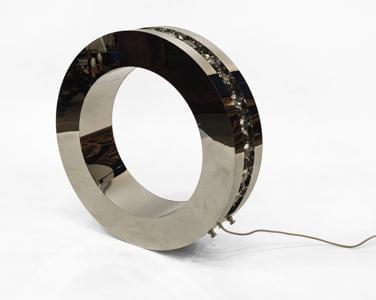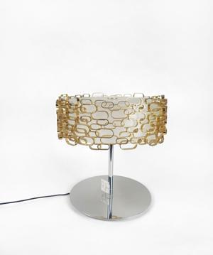Métal chromé et métal doré, plastique, H 46 et D 43 cm