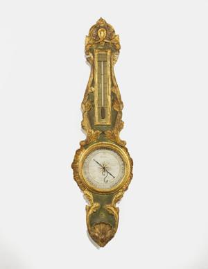 Bois sculpté et redoré, à motif de coquille et feuilles d'acanth...