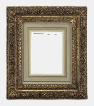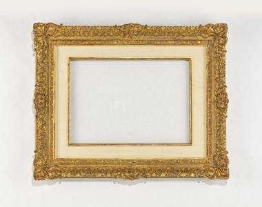 Bois stuqué doré, à motif de feuillage, 94,5x69,5 cm et à la vue...