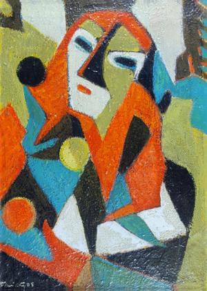 Portrait, essai de figuratif synthétique, huile sur toile signée...