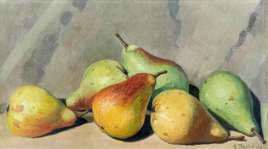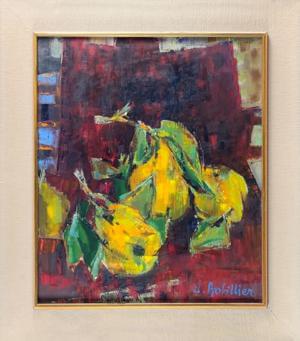 Nature morte aux poires, huile sur toile, signée, 25x45 cm