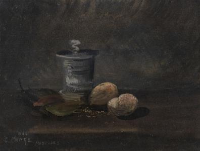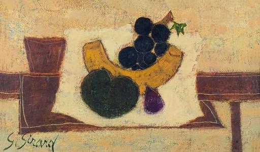 Les muscades, huile sur papier, signée et datée 1964, 13x17 cm