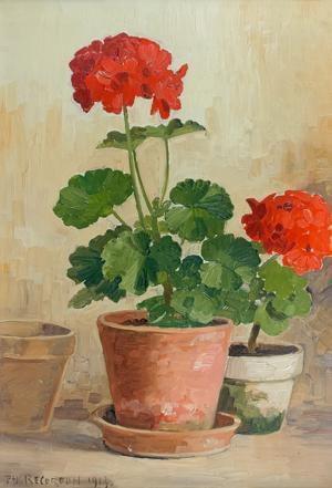 Géranium dans un pot, huile sur toile, signée et datée 1913, 43x...