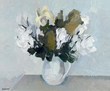 Bouquet de fleurs blanches, huile sur toile, signée, 50x60 cm